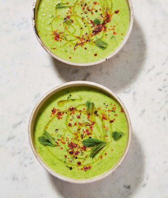 It’s quite nice to use sucha beautiful French word to describe what is the most simple of soups. Velouté simply means ‘velvety’, and velvety is just how I like my pea soups. My mum would make old-fashioned pea soup using soaked dried peas, cooked for hours on end until they broke down into a creamy, smooth mass. Well, I am happy to report you don’t need to soak, or cook, peas for hours. This soup can be...