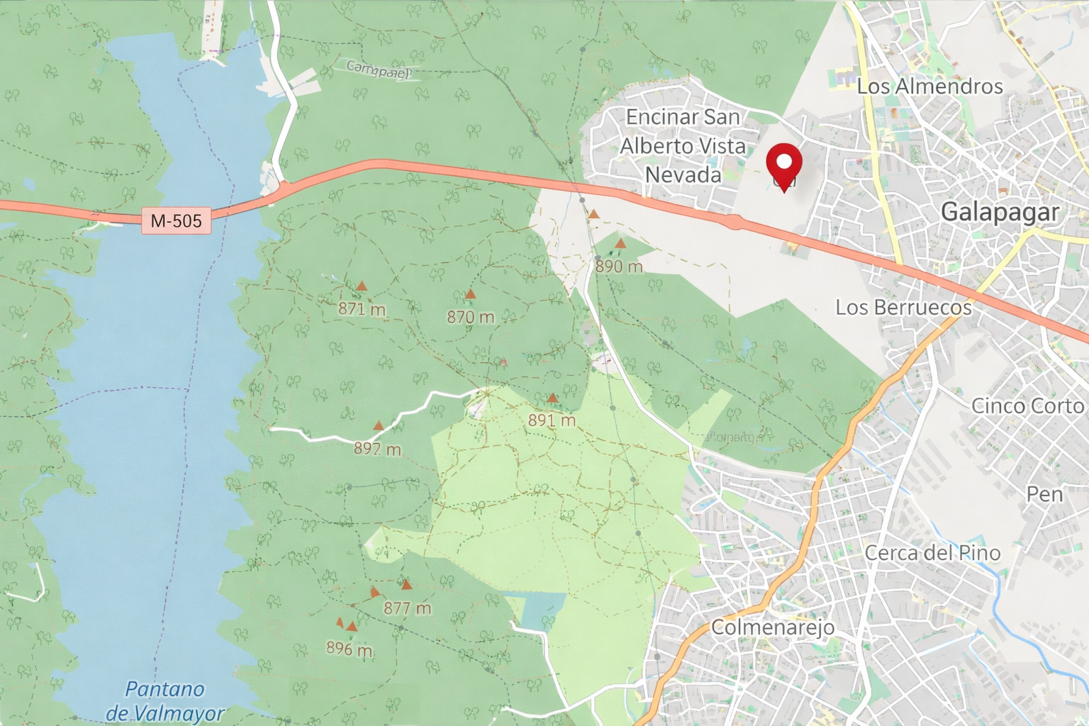 The estate lies between the municipalities of Galapagar and Colmenarejo. Approximately 40% of the land is protected as an area of special scenic value under Galapagar’s urban planning regulations (PGOU).