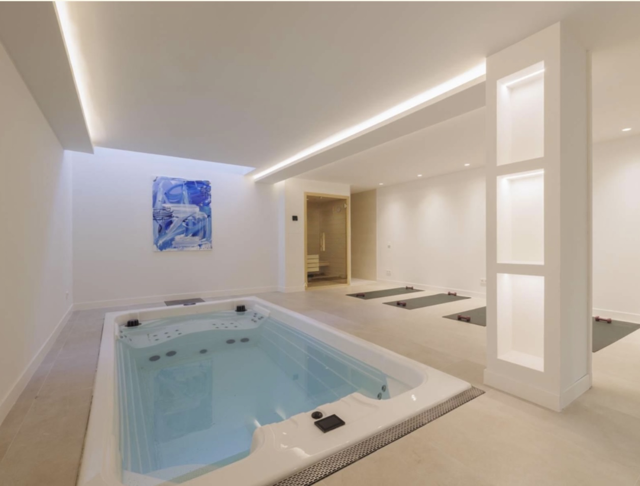 Entertaining is effortless with multiple indoor and outdoor living spaces, including a 360° chill-out terrace ideal for sunset gatherings and al fresco dining. The infinity pool merges seamlessly with the surrounding landscape, while the fully equipped cinema, state-of-the-art gym, indoor heated pool, and sauna provide the ultimate in leisure and relaxation.