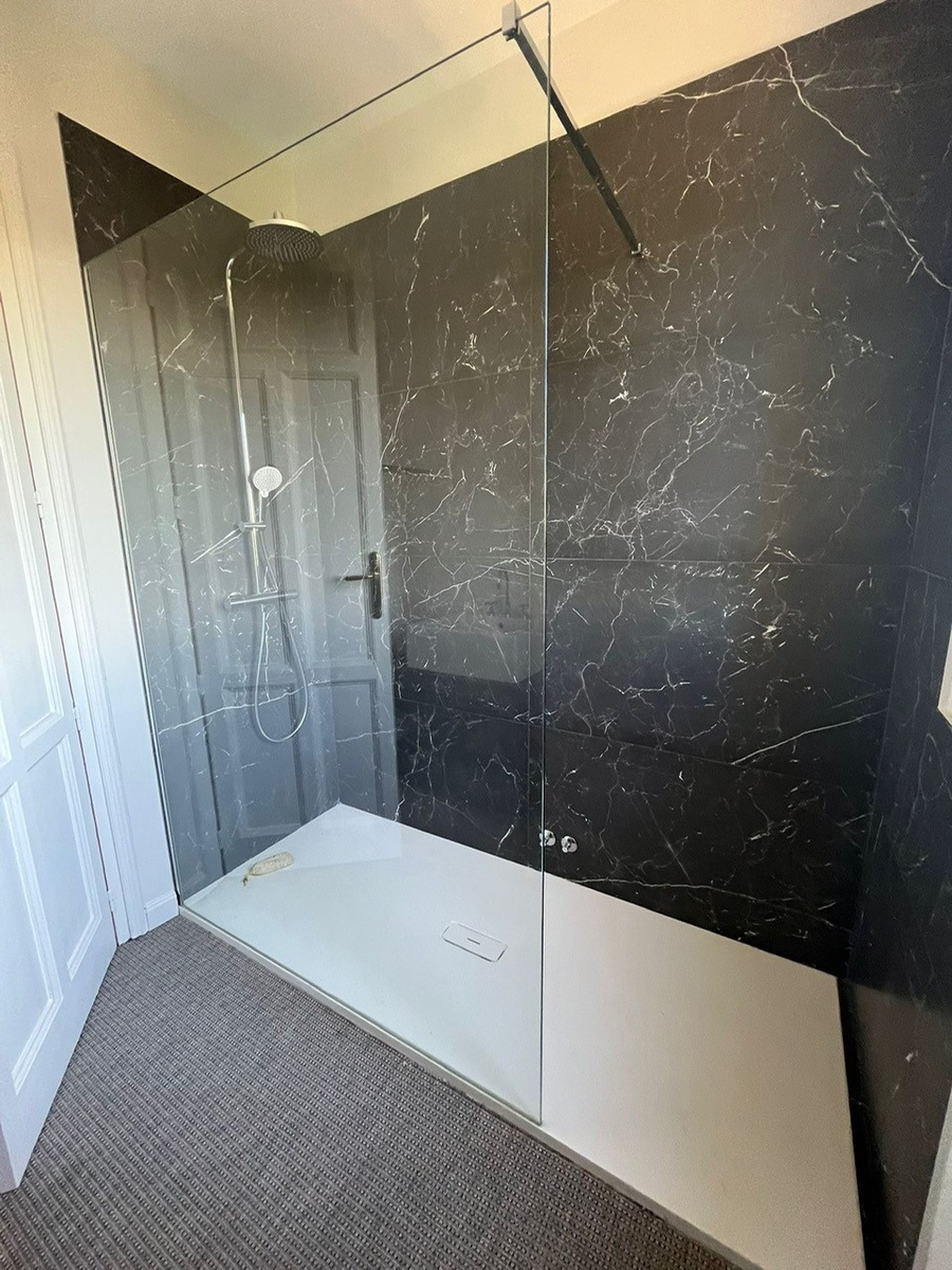 - Suite Bedroom I with en-suite bathroom and bespoke grey shelving